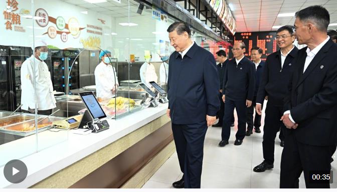 18日下午,習(xí)近平總書記來到果洛西寧民族中學(xué),走進(jìn)食堂察看學(xué)生就餐條件,囑咐食堂工作人員一定要確保學(xué)生飲食安全、營養(yǎng)可口。