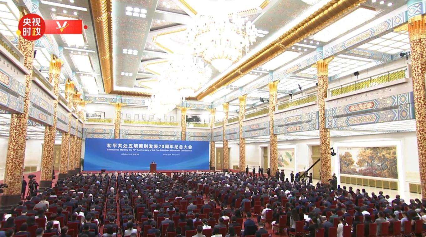 6月28日上午,和平共處五項原則發(fā)表70周年紀念大會在北京人民大會堂隆重舉行。國家主席習近平出席紀念大會并發(fā)表題為《弘揚和平共處五項原則,攜手構建人類命運共同體》的重要講話。