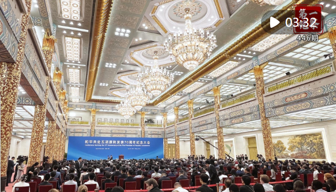 6月28日上午,和平共處五項原則發(fā)表70周年紀念大會在北京人民大會堂金色大廳隆重舉行。國家主席習(xí)近平出席紀念大會,并發(fā)表題為《弘揚和平共處五項原則,攜手構(gòu)建人類命運共同體》的重要講話。