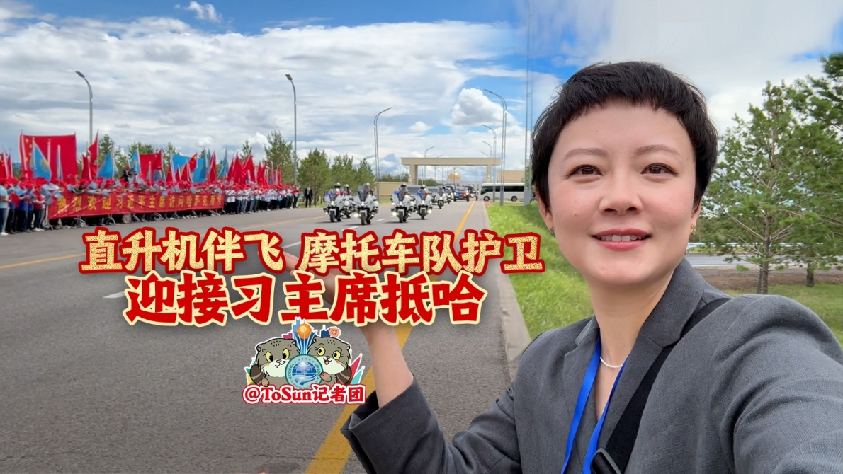 ToSun記者團(tuán)在阿斯塔納國(guó)際機(jī)場(chǎng)專機(jī)樓附近,跟當(dāng)?shù)刂匈Y企業(yè)員工們一起迎接習(xí)主席車隊(duì)到來。戳視頻,跟隨我們的鏡頭去現(xiàn)場(chǎng)看看吧。