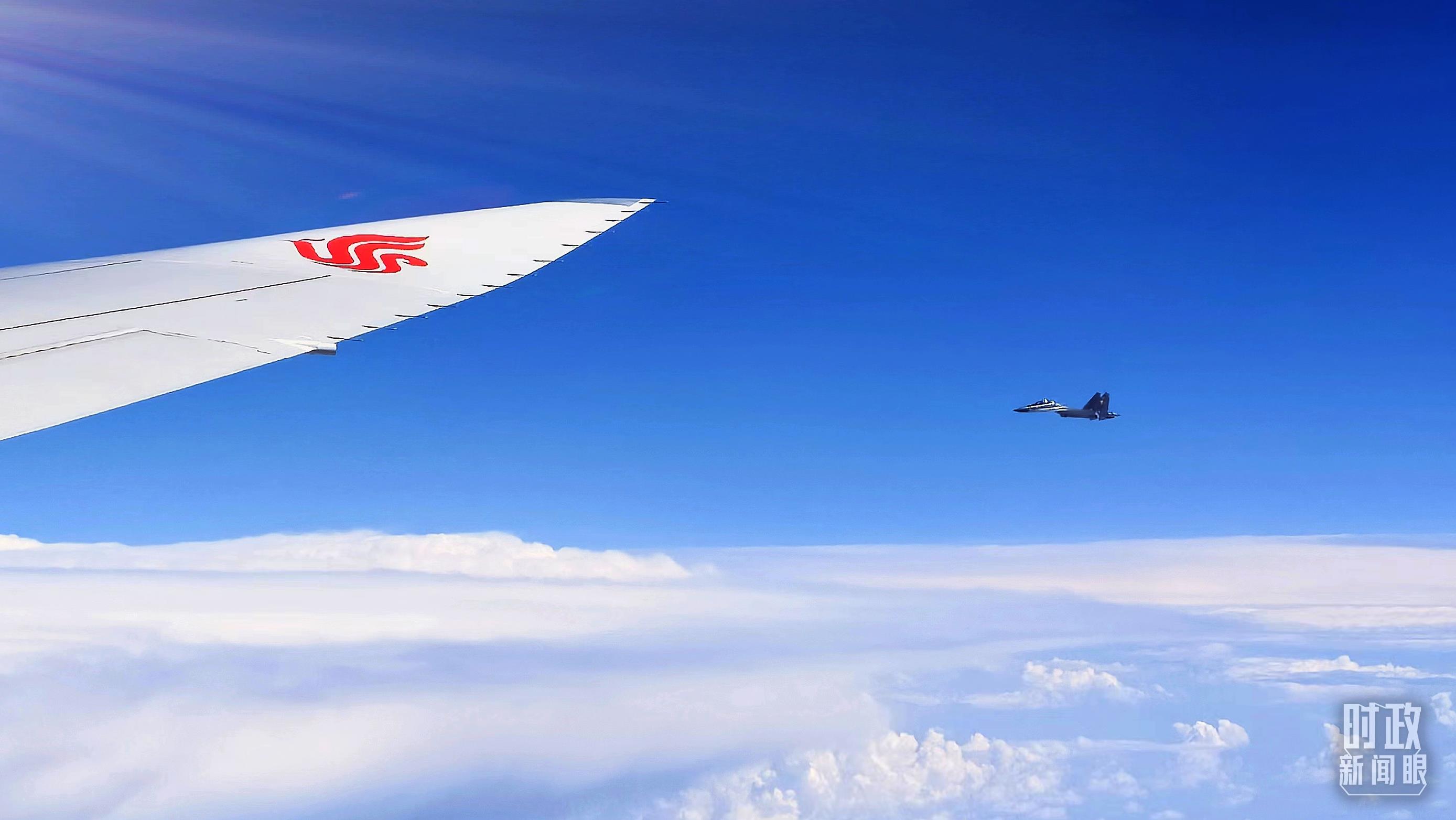 護(hù)航的哈薩克斯坦空軍戰(zhàn)機(jī)。(總臺(tái)央視記者李錚拍攝)