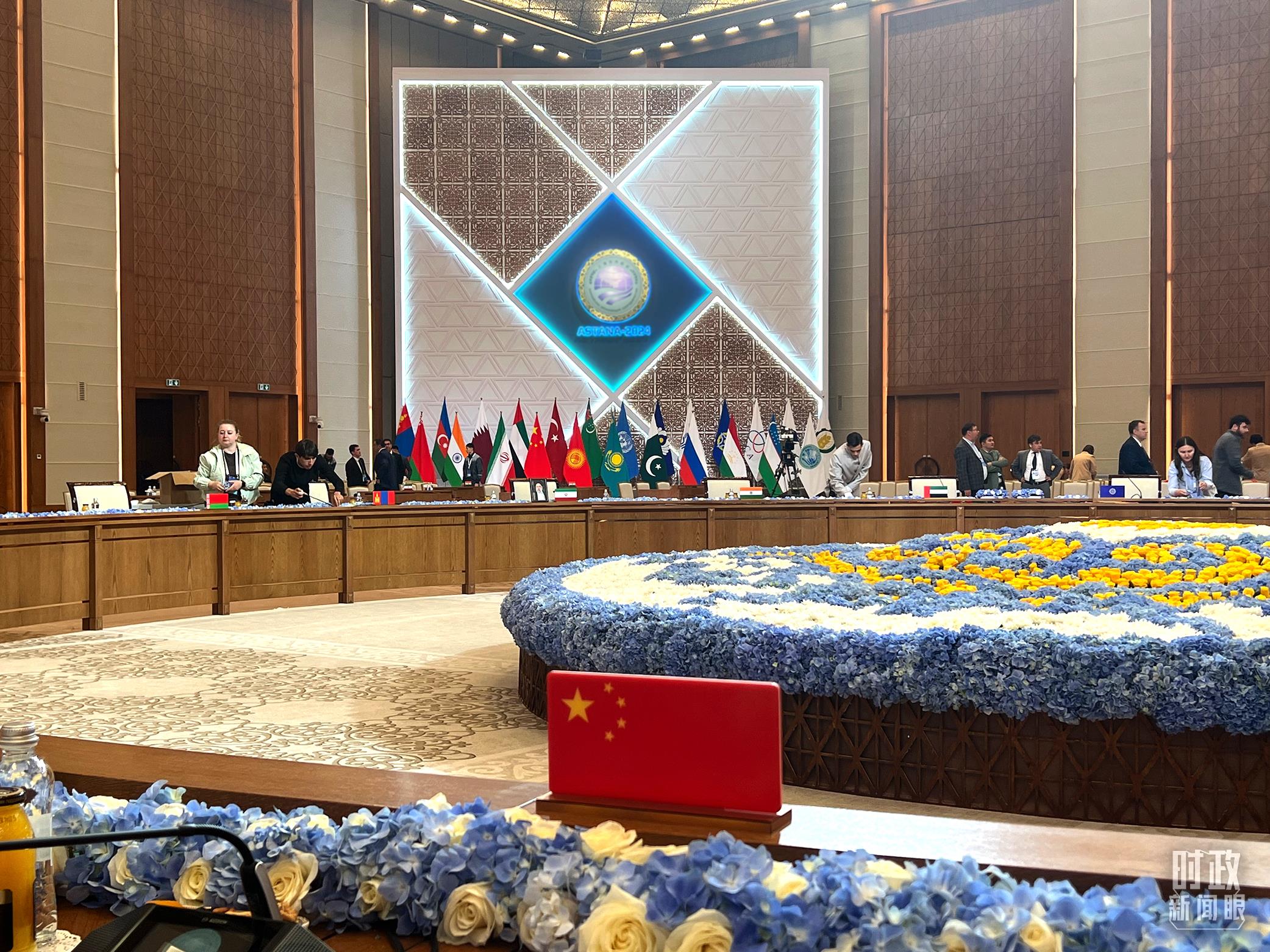 當(dāng)天下午,“上海合作組織+”阿斯塔納峰會(huì)在這里舉行,這是會(huì)議開(kāi)始前。(總臺(tái)央視記者石丞拍攝)