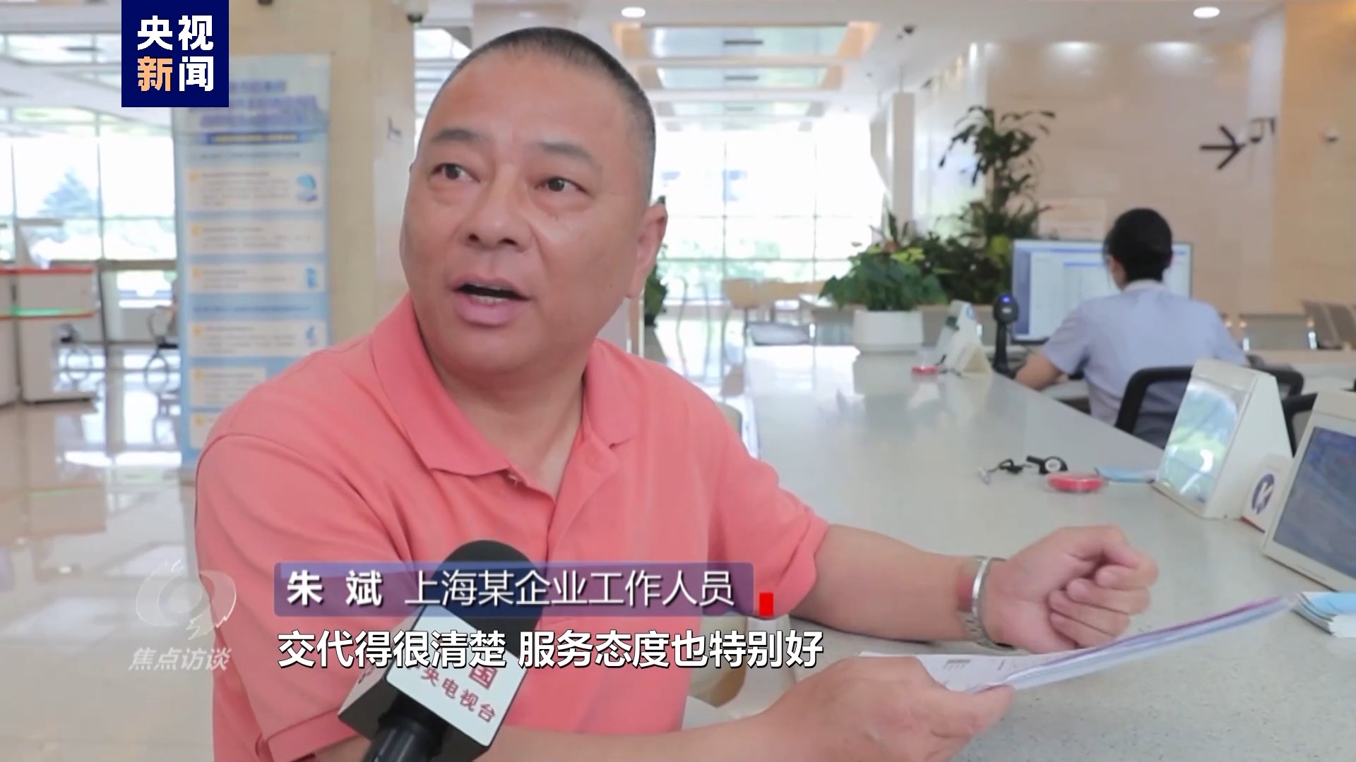 上海某企業(yè)工作人員 朱斌:對(duì)我們企業(yè)來(lái)辦事、來(lái)辦證交代得很清楚,服務(wù)態(tài)度也特別好。