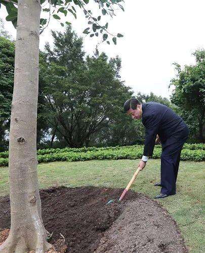 8年前種下的那棵高山榕已是亭亭如蓋、枝繁葉茂,展現(xiàn)出蓬勃的生命活力??倳涀叩綐?shù)下,深有感慨地說(shuō):“8年了,彈指一揮間啊。選的這個(gè)地方很好,樹(shù)冠能展開(kāi),樹(shù)長(zhǎng)得也快?!?/p>
