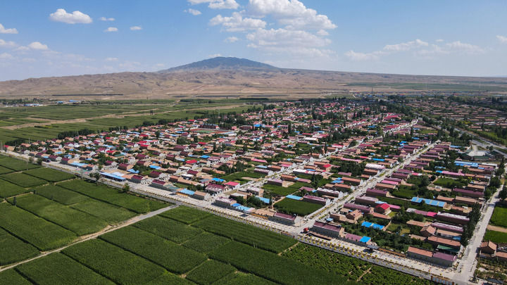 寧夏吳忠市紅寺堡區(qū)柳泉鄉(xiāng)永新村(2021年7月29日攝,無人機照片)。