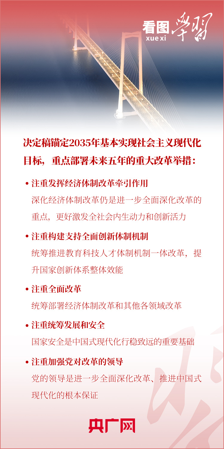 從征求和確定全會(huì)議題到起草文件、深入調(diào)查研究、廣泛征求意見、開展專題論證、反復(fù)討論修改,習(xí)近平總書記指出,決定稿錨定2035年基本實(shí)現(xiàn)社會(huì)主義現(xiàn)代化目標(biāo),重點(diǎn)部署未來五年的重大改革舉措?!拔鍌€(gè)注重”成為《決定》內(nèi)容擺布鮮明特點(diǎn)。一起來學(xué)習(xí)!