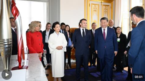 兩個(gè)多月前,國(guó)家主席習(xí)近平在巴黎愛(ài)麗舍宮同法國(guó)總統(tǒng)馬克龍舉行會(huì)談。會(huì)談前,兩國(guó)元首夫婦互贈(zèng)禮品。習(xí)近平主席贈(zèng)送給馬克龍總統(tǒng)的是北京雙奧火炬,馬克龍總統(tǒng)則以巴黎奧運(yùn)火炬回贈(zèng)。習(xí)近平主席說(shuō):“法國(guó)是一個(gè)體育強(qiáng)國(guó),我衷心祝愿巴黎奧運(yùn)會(huì)取得成功。中方將派出高水平代表團(tuán)赴法參賽。”