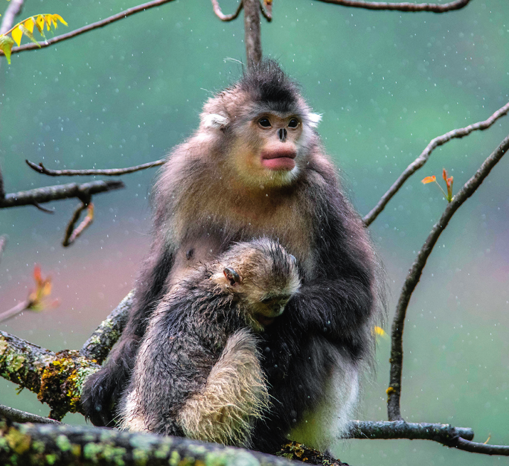 云南迪慶藏族自治州香格里拉滇金絲猴國(guó)家公園里的滇金絲猴(資料照片)胡超 攝/本刊