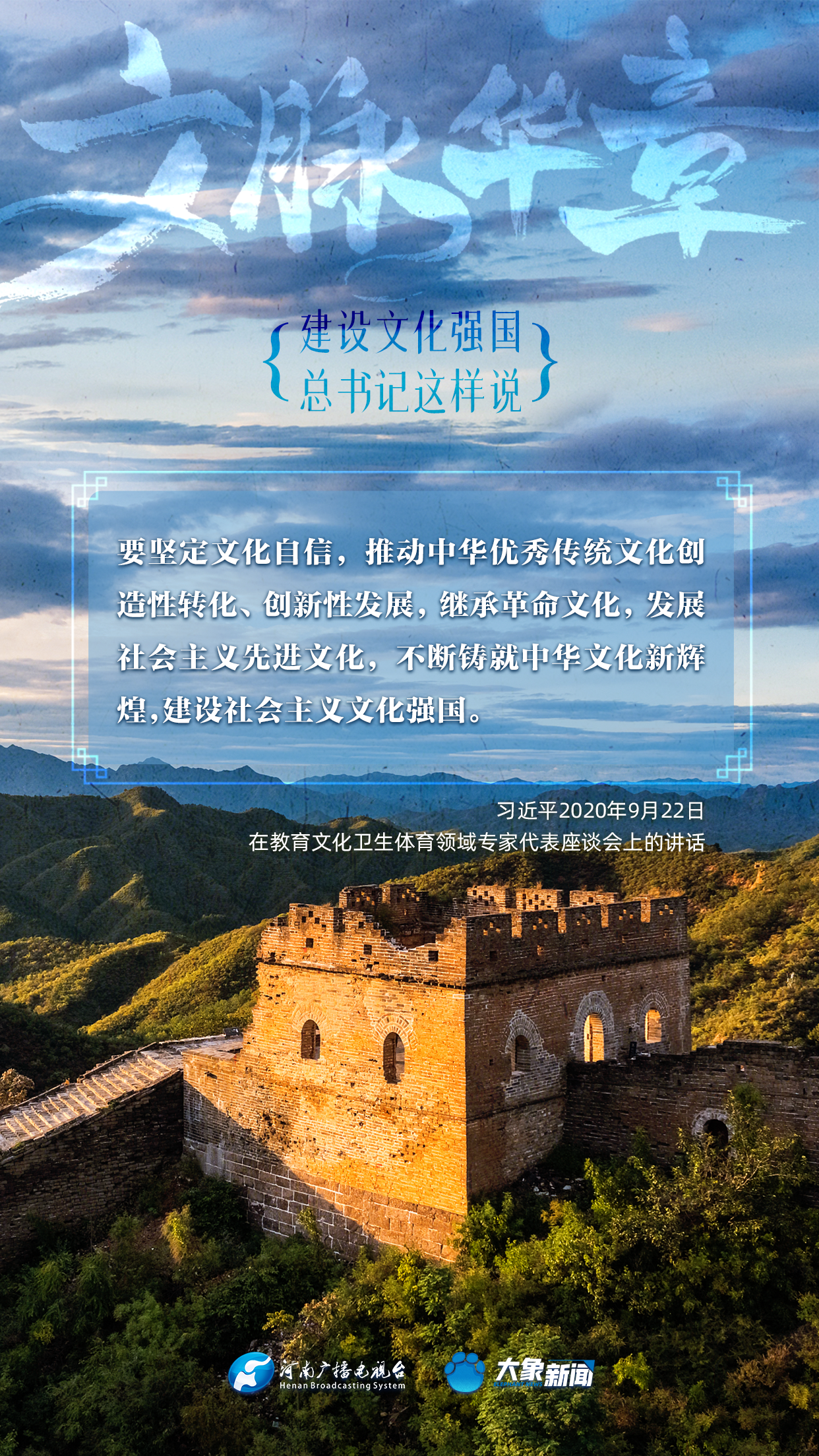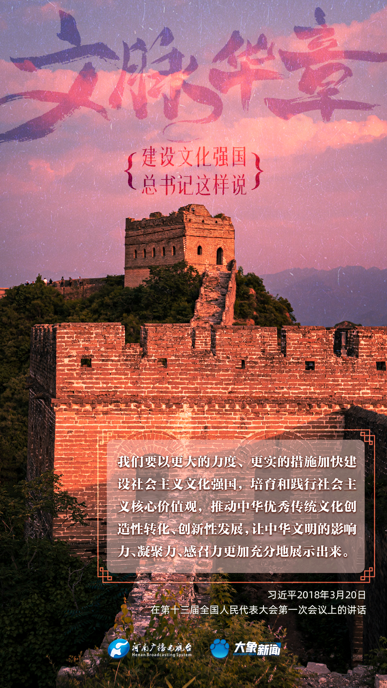 黨的十八大以來,習(xí)近平總書記站在全局和戰(zhàn)略高度,就建設(shè)社會主義文化強(qiáng)國提出一系列新思想新觀點新論斷,為我們堅定文化自信,堅持中國特色社會主義文化發(fā)展道路,提供了指引。大象新聞與您一起學(xué)習(xí)、領(lǐng)悟。