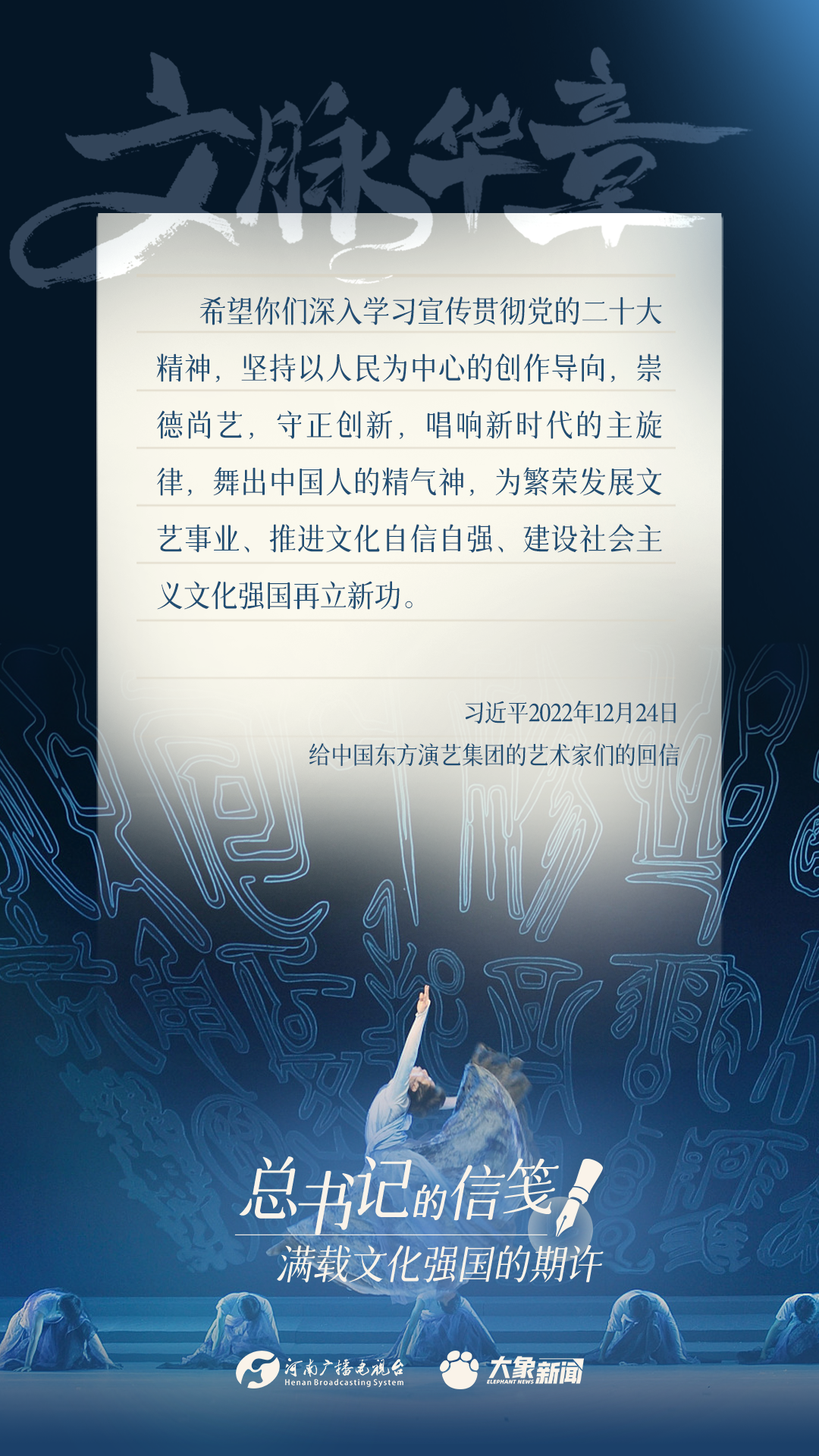 黨的十八大以來(lái),習(xí)近平總書(shū)記多次以書(shū)信的方式,同奮戰(zhàn)在建設(shè)文化強(qiáng)國(guó)一線的干部群眾、專(zhuān)家學(xué)者以及各行各業(yè)各界人士親切交流,一封封信箋,傳達(dá)關(guān)切、鼓勵(lì)與厚望。