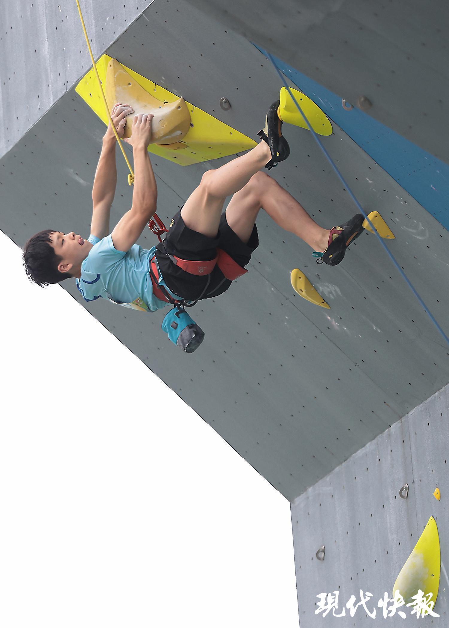 趙一程在江蘇省運(yùn)會攀巖比賽上“飛檐走壁”