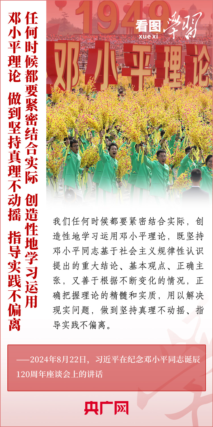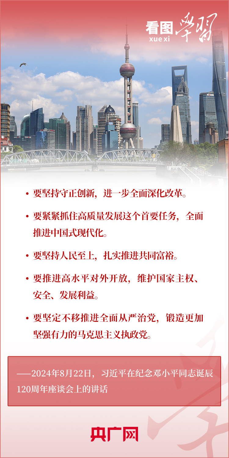8月22日,習(xí)近平總書記在紀(jì)念鄧小平同志誕辰120周年座談會(huì)上發(fā)表重要講話指出,鄧小平同志的歷史功勛是全方位的、開創(chuàng)性的,對(duì)中國(guó)和世界的影響是深刻的、長(zhǎng)遠(yuǎn)的。總書記強(qiáng)調(diào),對(duì)鄧小平同志最好的紀(jì)念,就是把他開創(chuàng)的中國(guó)特色社會(huì)主義事業(yè)繼續(xù)推向前進(jìn)。我們要緊緊圍繞以中國(guó)式現(xiàn)代化全面推進(jìn)強(qiáng)國(guó)建設(shè)、民族復(fù)興偉業(yè)這個(gè)中心任務(wù),繼往開來,奮發(fā)進(jìn)取。一起來學(xué)習(xí)!