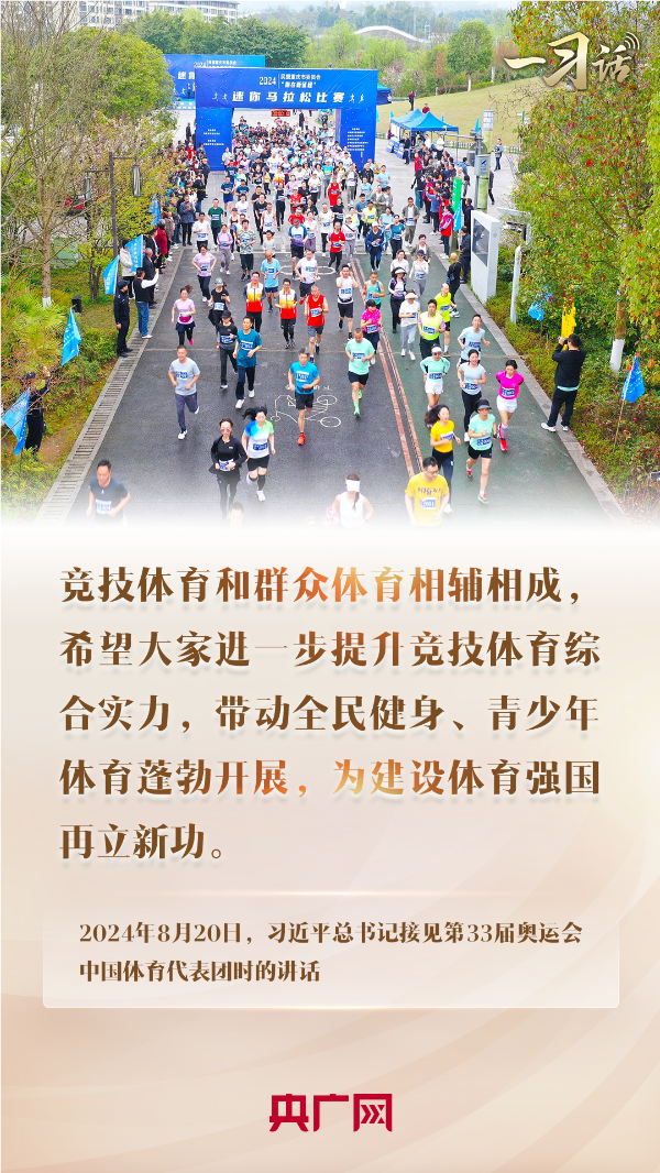 近日,在接見第33屆奧運(yùn)會中國體育代表團(tuán)時,習(xí)近平總書記指出,競技體育和群眾體育相輔相成,希望大家進(jìn)一步提升競技體育綜合實(shí)力,帶動全民健身、青少年體育蓬勃開展,為建設(shè)體育強(qiáng)國再立新功。體育,在總書記心中有著很重的分量。