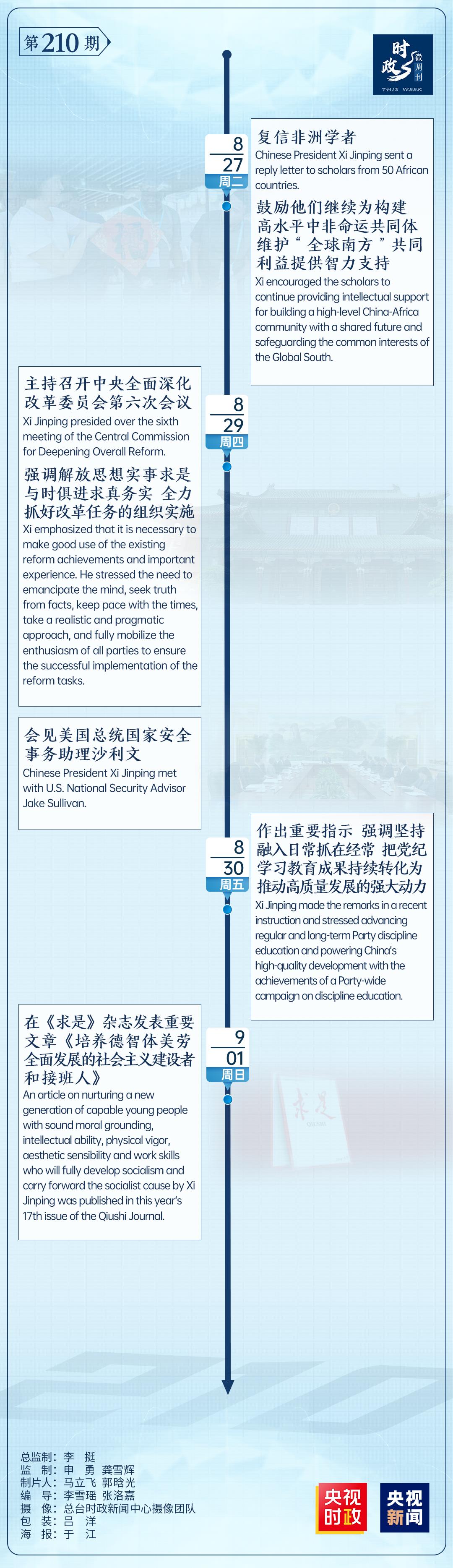 時(shí)政微周刊丨總書(shū)記的一周(8月26日—9月1日)