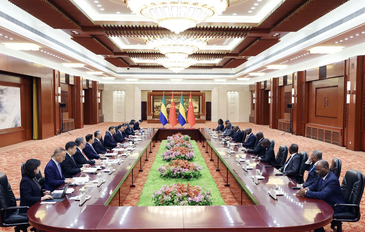 9月4日下午,國家主席習(xí)近平在北京人民大會(huì)堂會(huì)見來華出席中非合作論壇北京峰會(huì)的加蓬總統(tǒng)恩圭馬。