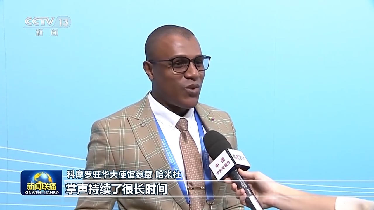 科摩羅駐華大使館參贊 哈米杜:每一個(gè)在現(xiàn)場聆聽講話的人都感到很振奮。大家都在鼓掌,掌聲持續(xù)了很長時(shí)間。中非關(guān)系整體定位提升至新時(shí)代全天候中非命運(yùn)共同體,它將為非洲的發(fā)展帶來更多機(jī)遇,將促進(jìn)中非雙方以及非洲國家之間的交流合作。