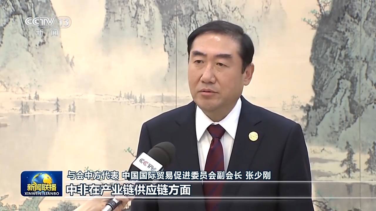 與會中方代表、中國國際貿(mào)易促進(jìn)委員會副會長 張少剛:中非在產(chǎn)業(yè)鏈供應(yīng)鏈方面具有極強(qiáng)互補(bǔ)性。中國貿(mào)促會將用好中國國際供應(yīng)鏈促進(jìn)博覽會等合作平臺,促進(jìn)中非經(jīng)貿(mào)合作高質(zhì)量發(fā)展,推動(dòng)中國大市場成為非洲大機(jī)遇。