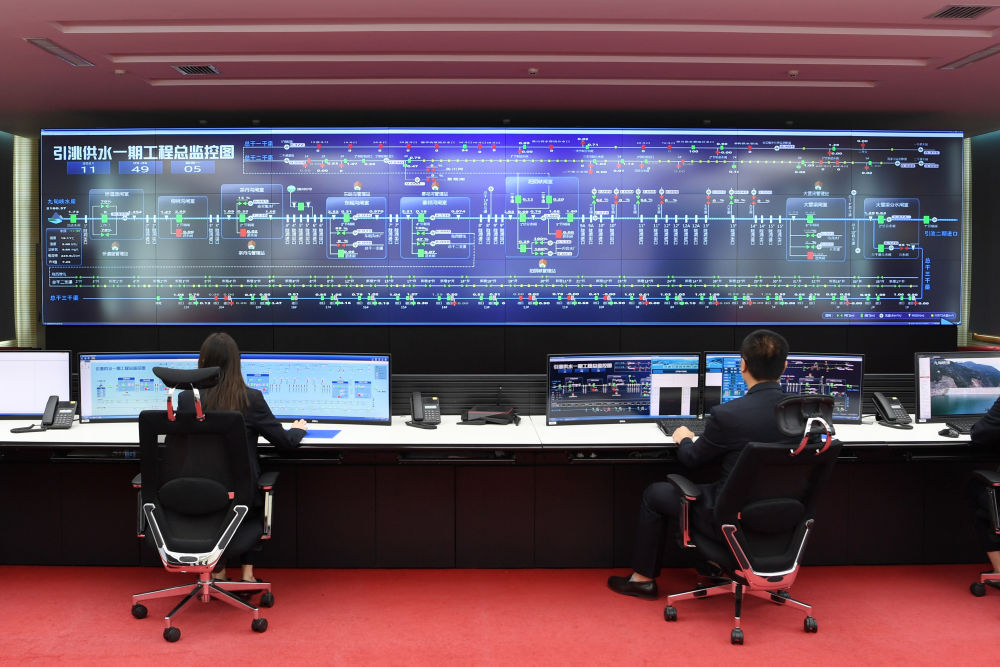 這是2021年9月6日在甘肅省引洮工程水資源利用中心調(diào)度中心拍攝的引洮供水一期工程調(diào)度現(xiàn)場(chǎng)。 新華社記者 范培珅 攝