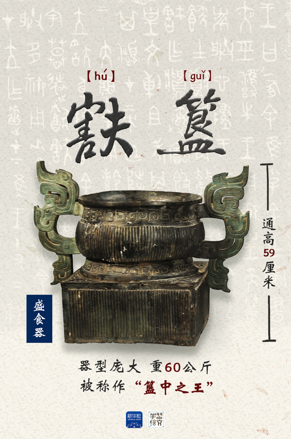 現(xiàn)展出于寶雞青銅器博物院的?簋號稱“簋中之王”。圓形簋身與方形底座相連,簋內(nèi)鑄有銘文124字,由此得知它是西周第十位天子周厲王姬?為祭祀先祖、祈神降福而作。