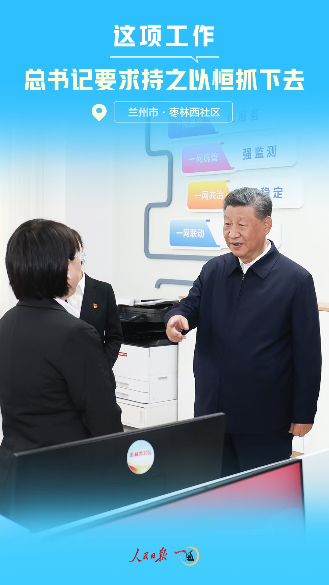 9月11日下午,習(xí)近平總書記來到甘肅省蘭州市考察。在安寧區(qū)棗林西社區(qū)黨群服務(wù)中心考察時,總書記細(xì)致詢問了落實(shí)為基層減負(fù)等情況。
