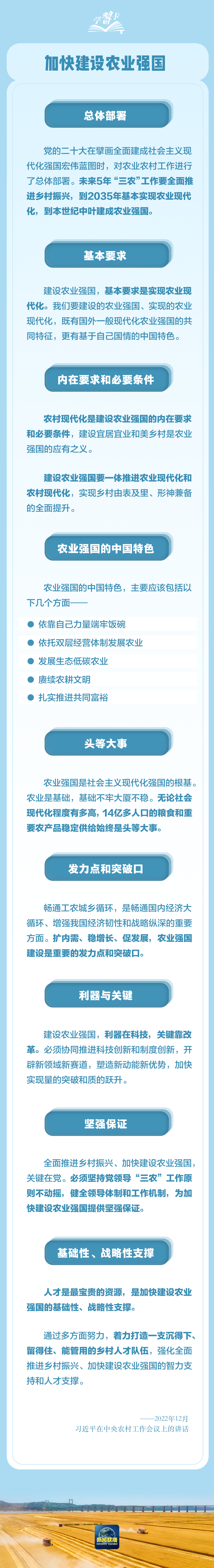 農(nóng)業(yè)農(nóng)村農(nóng)民問題是關(guān)系國計民生的根本性問題,農(nóng)業(yè)強國是社會主義現(xiàn)代化強國的根基。習近平總書記強調(diào),實現(xiàn)高質(zhì)量發(fā)展,也離不開農(nóng)業(yè)發(fā)展。拓展現(xiàn)代化發(fā)展空間,農(nóng)業(yè)農(nóng)村是大有可為的廣闊天地。