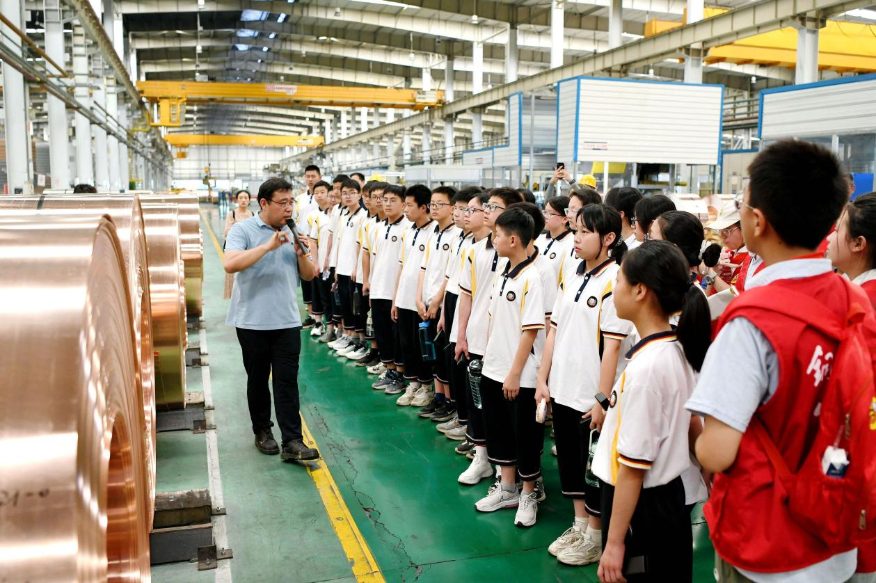 在安徽銅陵,銅陵七中的老師們把思政課搬進制造車間,帶領(lǐng)同學們“沉浸式”體驗高科技銅產(chǎn)品生產(chǎn)流程,近距離感受中國制造業(yè)和家鄉(xiāng)銅工業(yè)的蓬勃發(fā)展歷程。