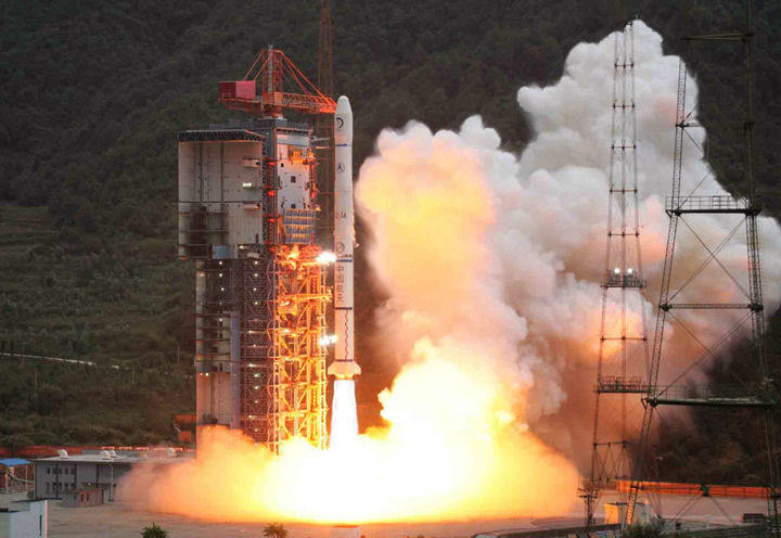2007年10月24日,搭載著我國首顆探月衛(wèi)星嫦娥一號的長征三號甲運載火箭在西昌衛(wèi)星發(fā)射中心三號塔架點火發(fā)射。新華社記者 李剛 攝