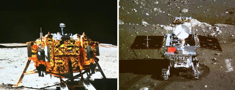 2013年12月15日晚,正在月球上開展科學探測工作的嫦娥三號著陸器和巡視器進行互成像實驗,“兩器”順利互拍,嫦娥三號任務取得圓滿成功。
