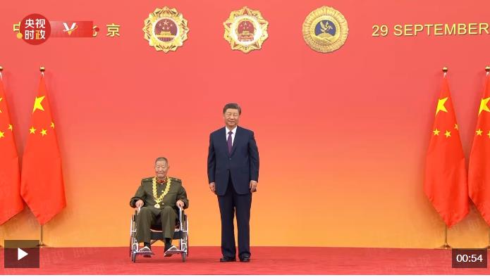 中華人民共和國國家勛章和國家榮譽(yù)稱號(hào)頒授儀式于9月29日上午10時(shí)在人民大會(huì)堂隆重舉行。中共中央總書記、國家主席、中央軍委主席習(xí)近平向“共和國勛章”獲得者黃宗德頒授勛章。