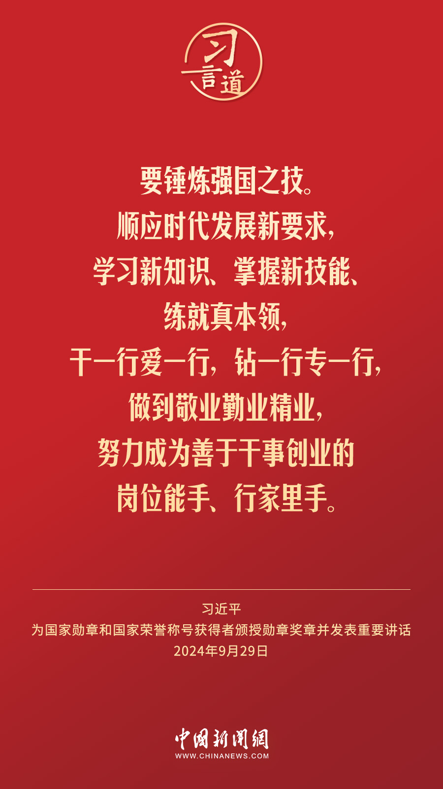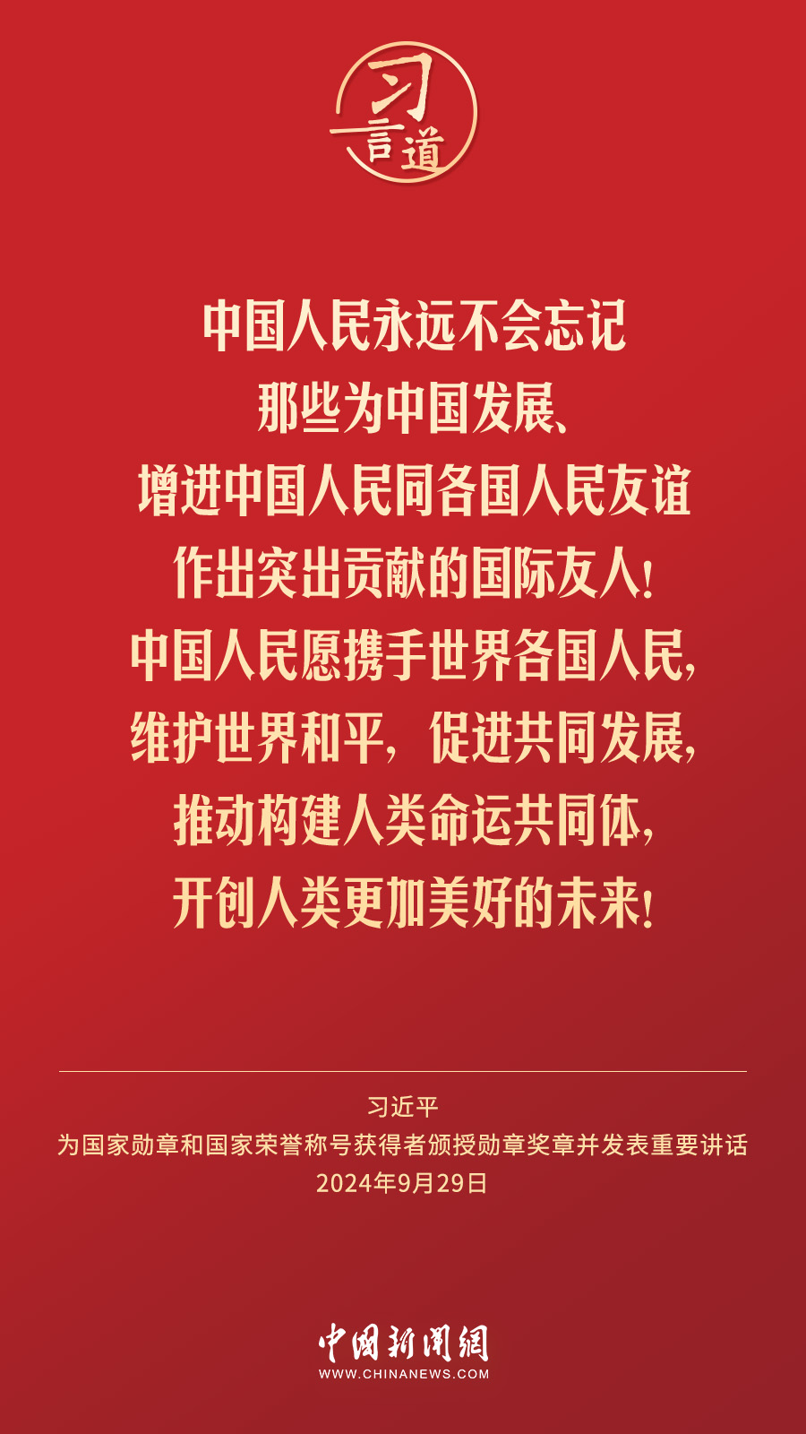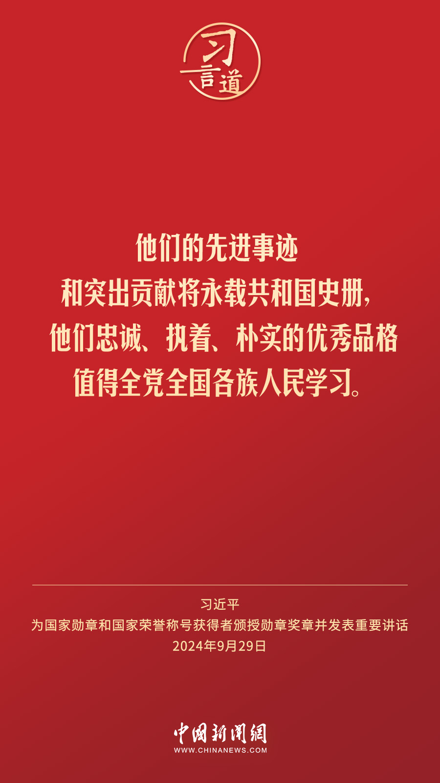 經(jīng)中共中央批準(zhǔn),中華人民共和國(guó)國(guó)家勛章和國(guó)家榮譽(yù)稱號(hào)頒授儀式于9月29日上午10時(shí)在人民大會(huì)堂隆重舉行。中共中央總書(shū)記、國(guó)家主席、中央軍委主席習(xí)近平向國(guó)家勛章和國(guó)家榮譽(yù)稱號(hào)獲得者分別授予“共和國(guó)勛章”“友誼勛章”和國(guó)家榮譽(yù)稱號(hào)獎(jiǎng)?wù)虏l(fā)表重要講話。習(xí)近平指出——