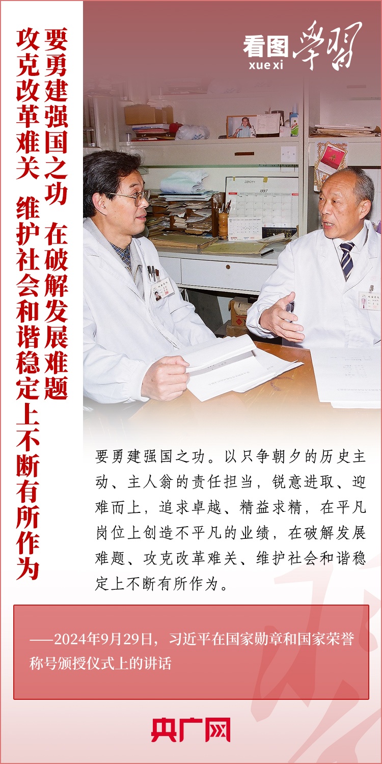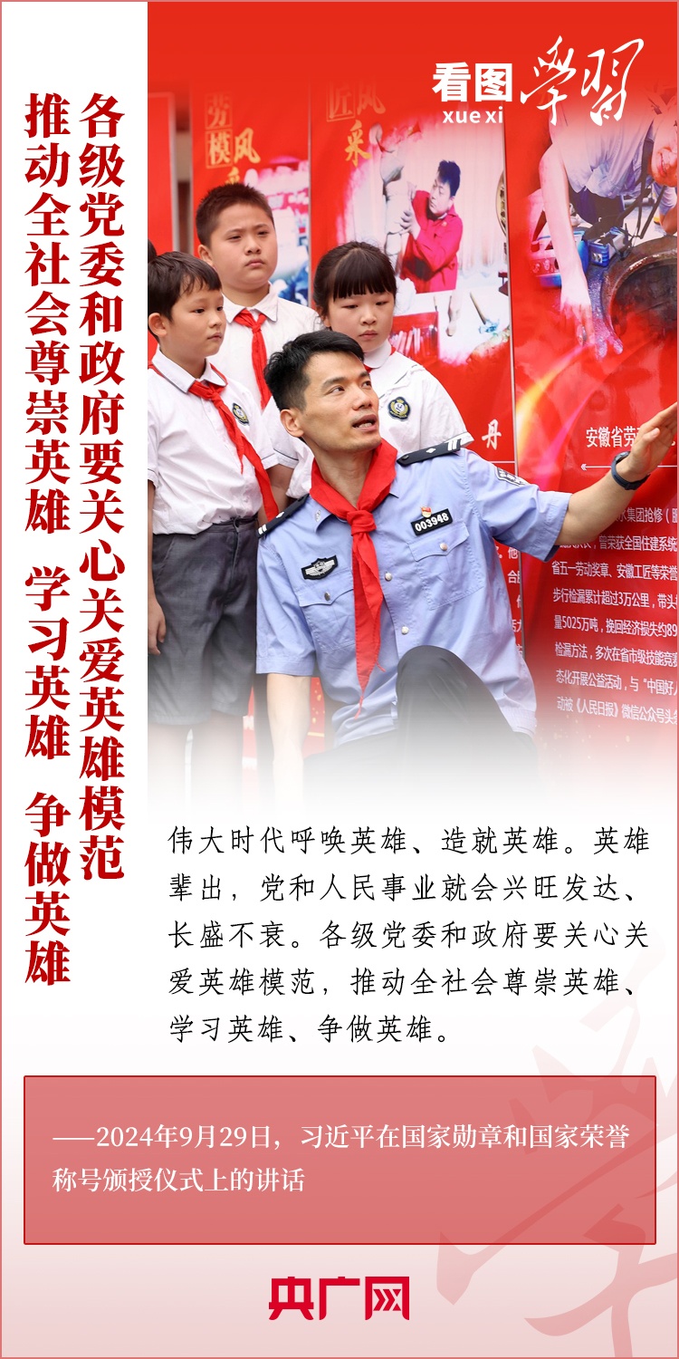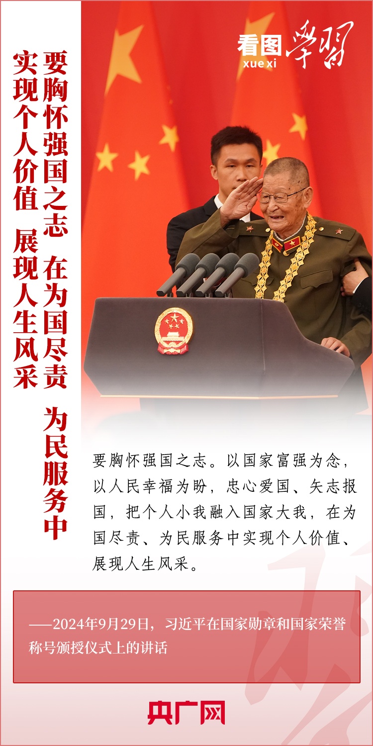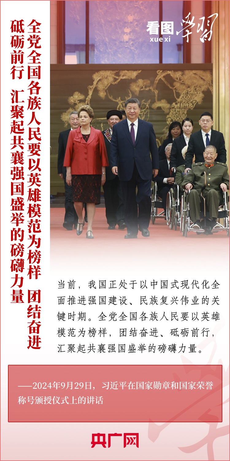 9月29日,中華人民共和國國家勛章和國家榮譽稱號頒授儀式在北京舉行,習近平總書記向國家勛章和國家榮譽稱號獲得者頒授勛章獎章并發(fā)表重要講話??倳洀娬{(diào),全黨全國各族人民要以英雄模范為榜樣,團結(jié)奮進、砥礪前行,匯聚起共襄強國盛舉的磅礴力量。一起來學習!
