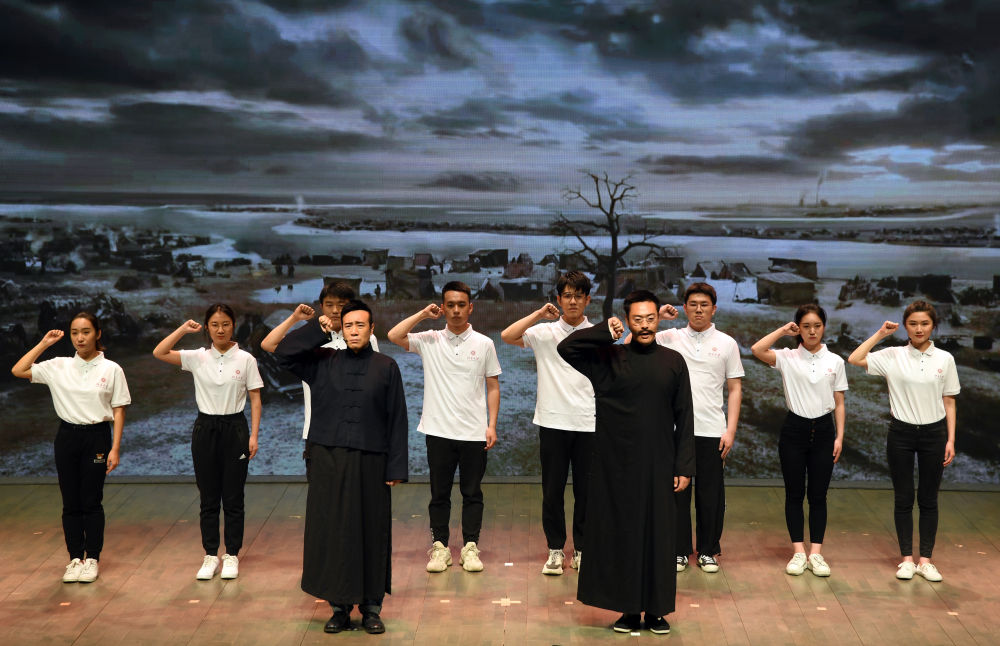 電視劇《覺醒年代》主創(chuàng)團(tuán)隊(duì)走進(jìn)北京大學(xué),劇中主要演員與北大學(xué)生同臺(tái)演出(2021年4月20日攝)。