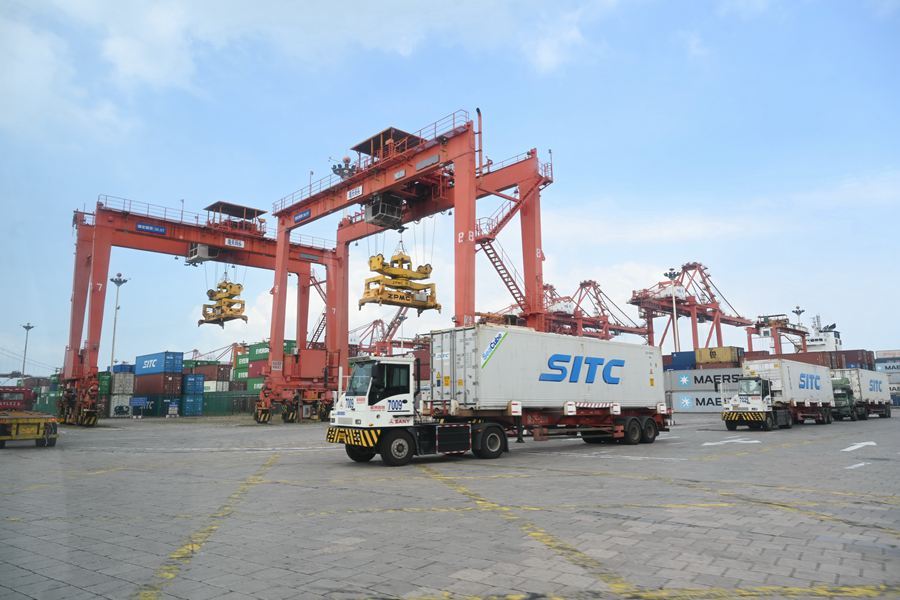 2024年8月6日拍攝的廈門港海天碼頭作業(yè)區(qū)一角。新華社記者 林善傳 攝