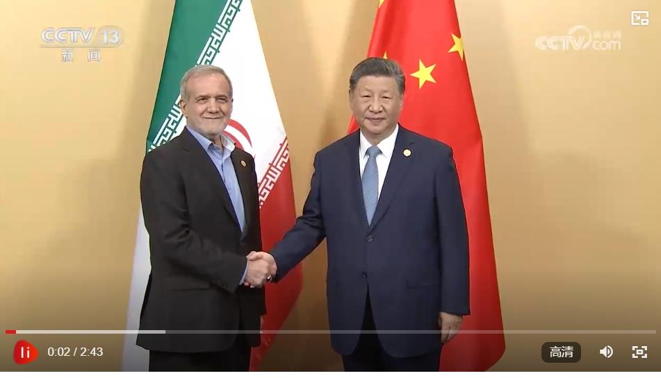 習(xí)近平祝賀并歡迎伊朗首次作為正式成員參加金磚國家領(lǐng)導(dǎo)人會晤,指出中方愿同伊方在金磚等多邊框架內(nèi)加強合作,進一步提升全球南方的影響力和發(fā)言權(quán),推動國際秩序朝著更加公正合理的方向發(fā)展。