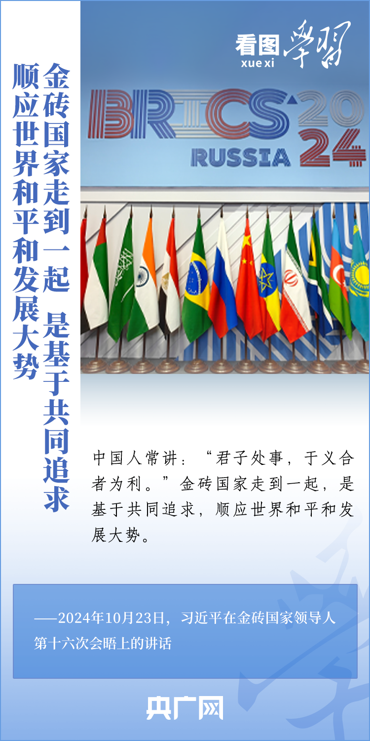 當?shù)貢r間10月23日,國家主席習近平在俄羅斯喀山出席金磚國家領導人第十六次會晤并發(fā)表重要講話。習主席深刻闡述推動“大金磚合作”高質量發(fā)展的中國主張,就金磚大家庭發(fā)展合作提出五點務實舉措,表達了中方愿同金磚各國一道,攜手更多“全球南方”國家共同推動構建人類命運共同體的真誠愿望。一起來學習!
