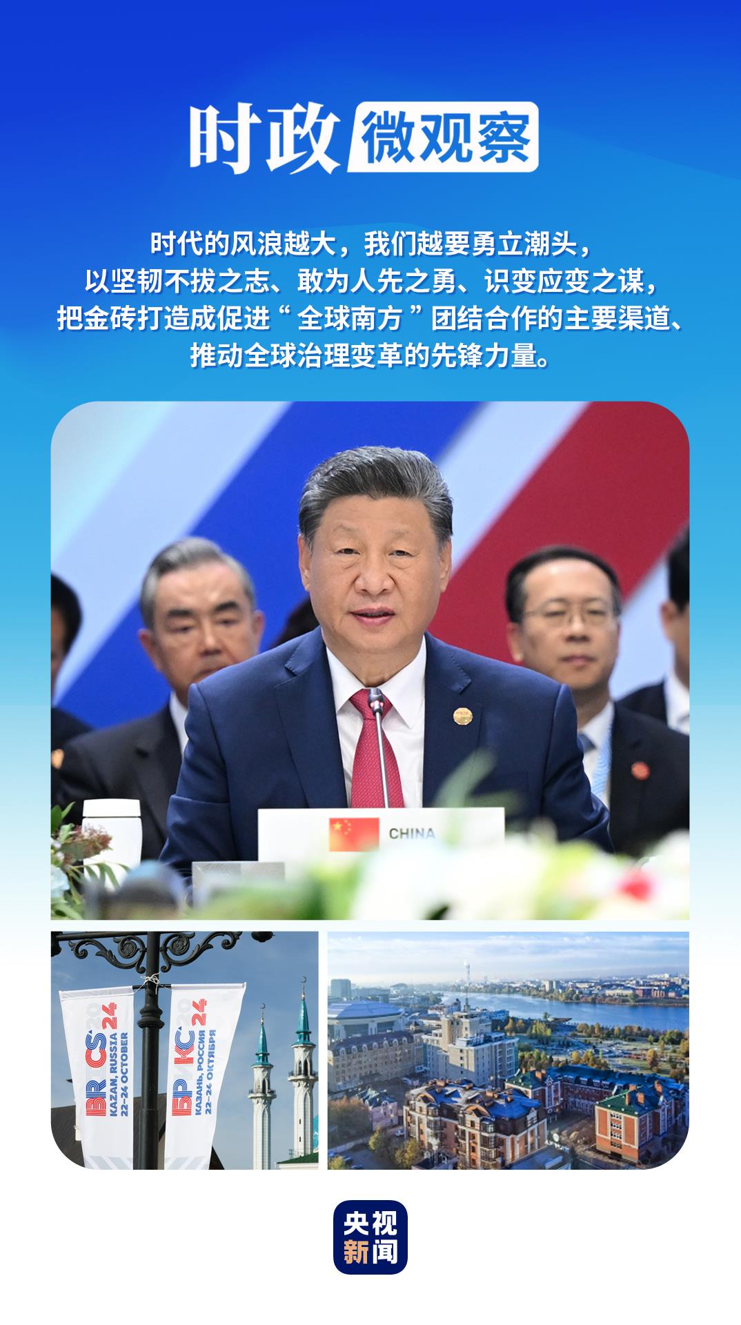 喀山之行的一系列密集活動(dòng)中,習(xí)近平主席深刻闡釋“精神力量”與“挺膺擔(dān)當(dāng)”,為開創(chuàng)“大金磚合作”高質(zhì)量發(fā)展新局面引領(lǐng)航向?!稌r(shí)政微觀察》為你解讀。