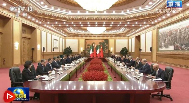 11月8日下午,國家主席習(xí)近平在北京人民大會堂同來華進(jìn)行國事訪問的意大利總統(tǒng)馬塔雷拉舉行會談。