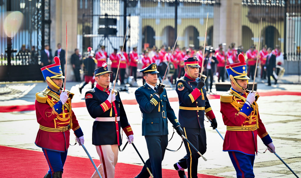 當(dāng)?shù)貢r(shí)間11月14日下午,國(guó)家主席習(xí)近平同秘魯總統(tǒng)博魯阿爾特舉行會(huì)談。在秘魯禮賓馬隊(duì)護(hù)衛(wèi)下,習(xí)近平乘車抵達(dá)總統(tǒng)府,受到博魯阿爾特總統(tǒng)熱情迎接。博魯阿爾特在總統(tǒng)府前廣場(chǎng)為習(xí)近平舉行隆重盛大歡迎儀式。