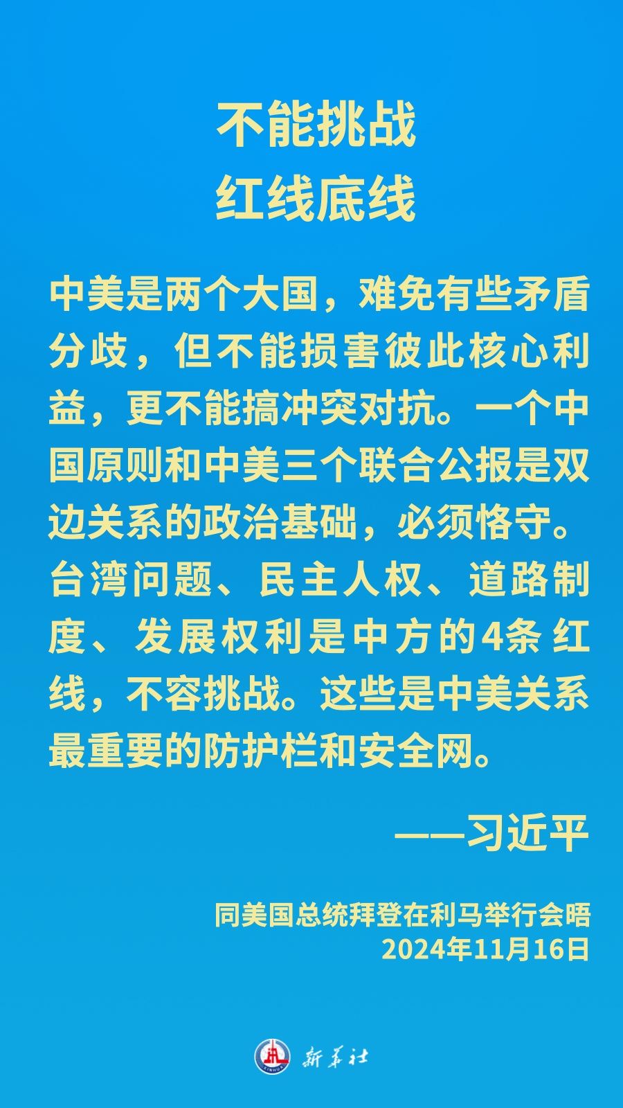 當地時間11月16日下午,習近平主席在秘魯利馬出席亞太經合組織領導人非正式會議期間應約同美國總統(tǒng)拜登舉行會晤。就中美關系發(fā)展,習近平主席闡明中方立場——