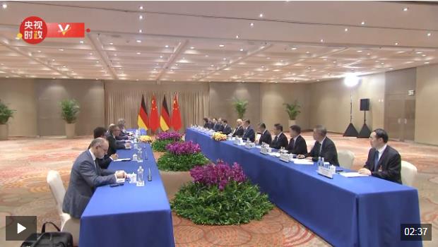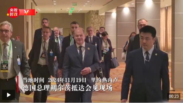 當地時間11月19日,國家主席習近平在里約熱內盧出席二十國集團領導人峰會期間會見德國總理朔爾茨。