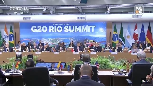 當天,G20領導人第十九次峰會在里約熱內盧現(xiàn)代藝術博物館開幕。峰會主題是“構建公正的世界和可持續(xù)的星球”,重點聚焦全球不平等、抗擊饑餓與貧困、可持續(xù)發(fā)展和全球治理改革等議題。