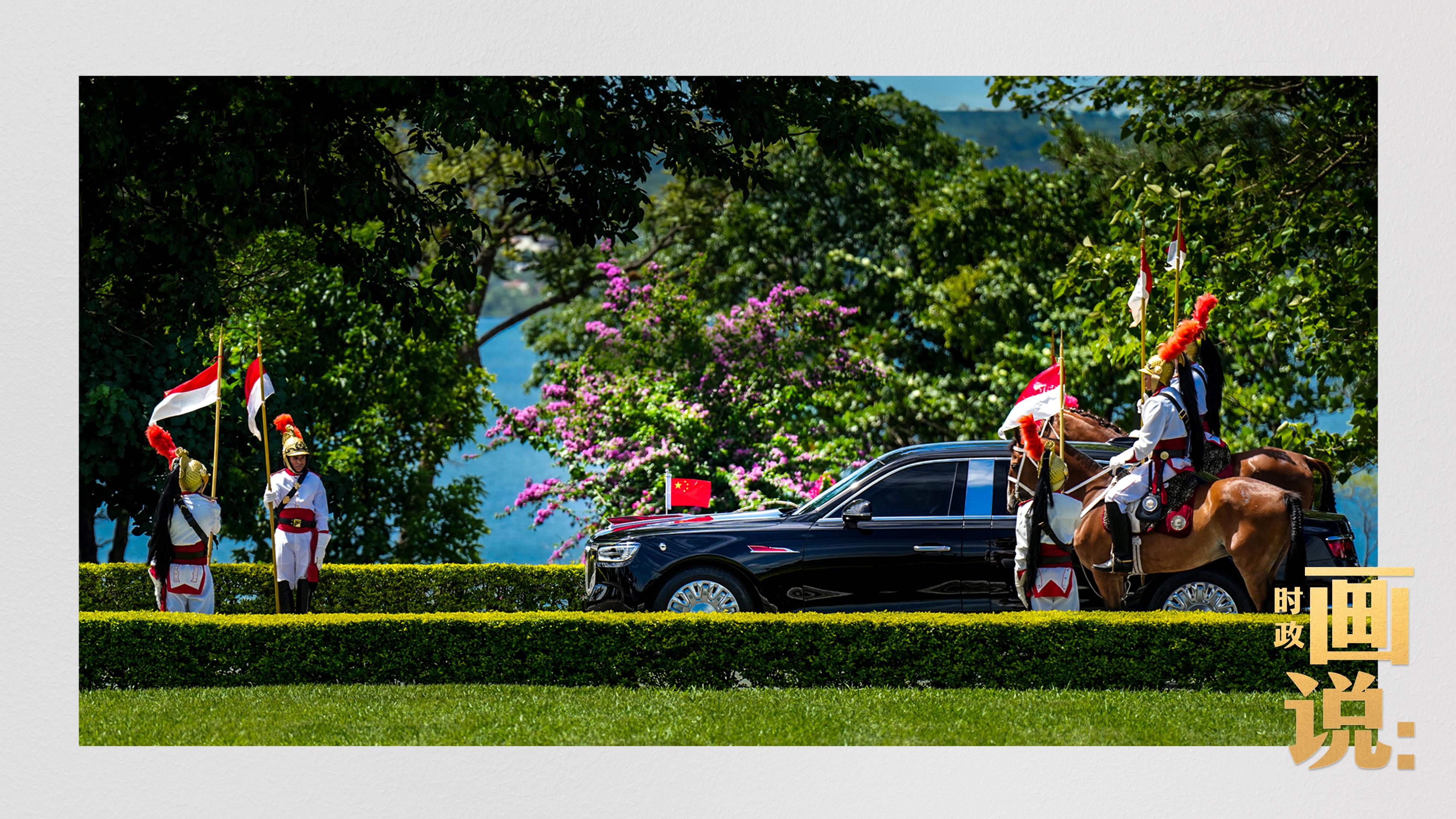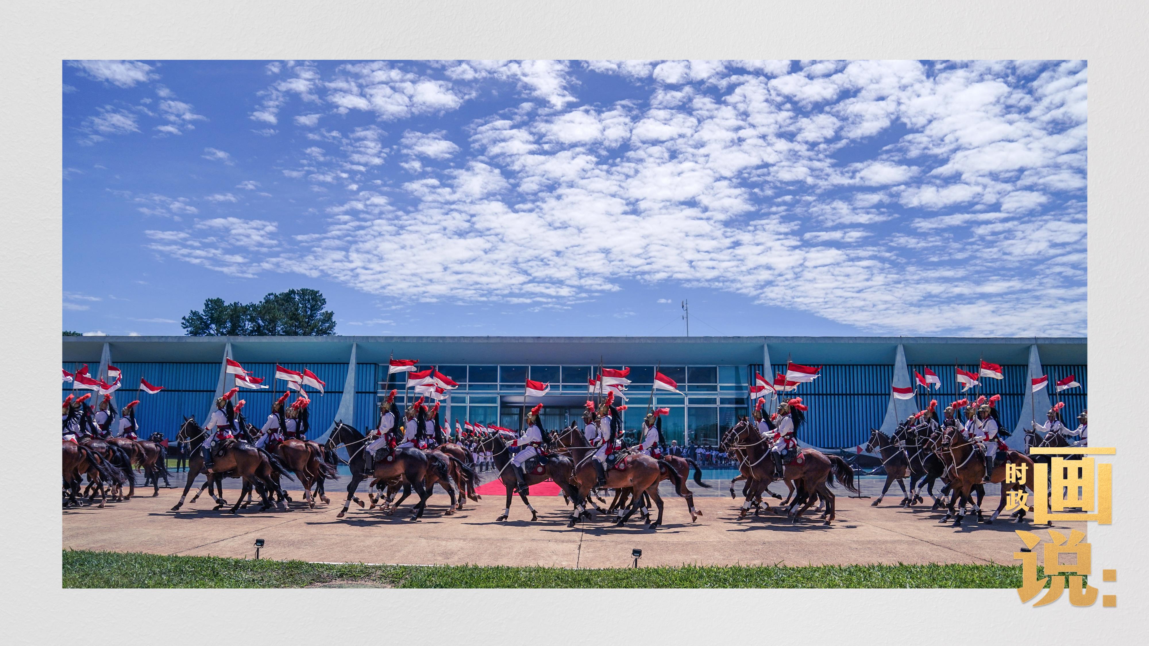 騎兵護衛(wèi)習近平主席專車抵達儀式現(xiàn)場,巴西藝術家用中文深情唱響中國經(jīng)典民歌《我的祖國》,現(xiàn)場氣氛隆重熱烈。