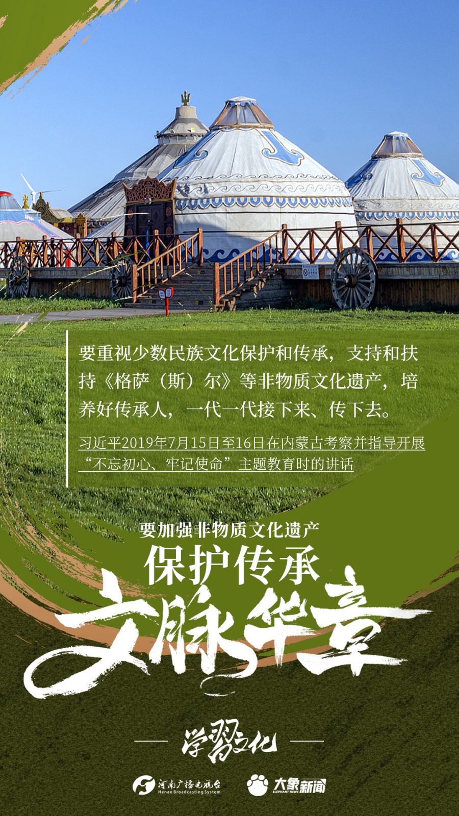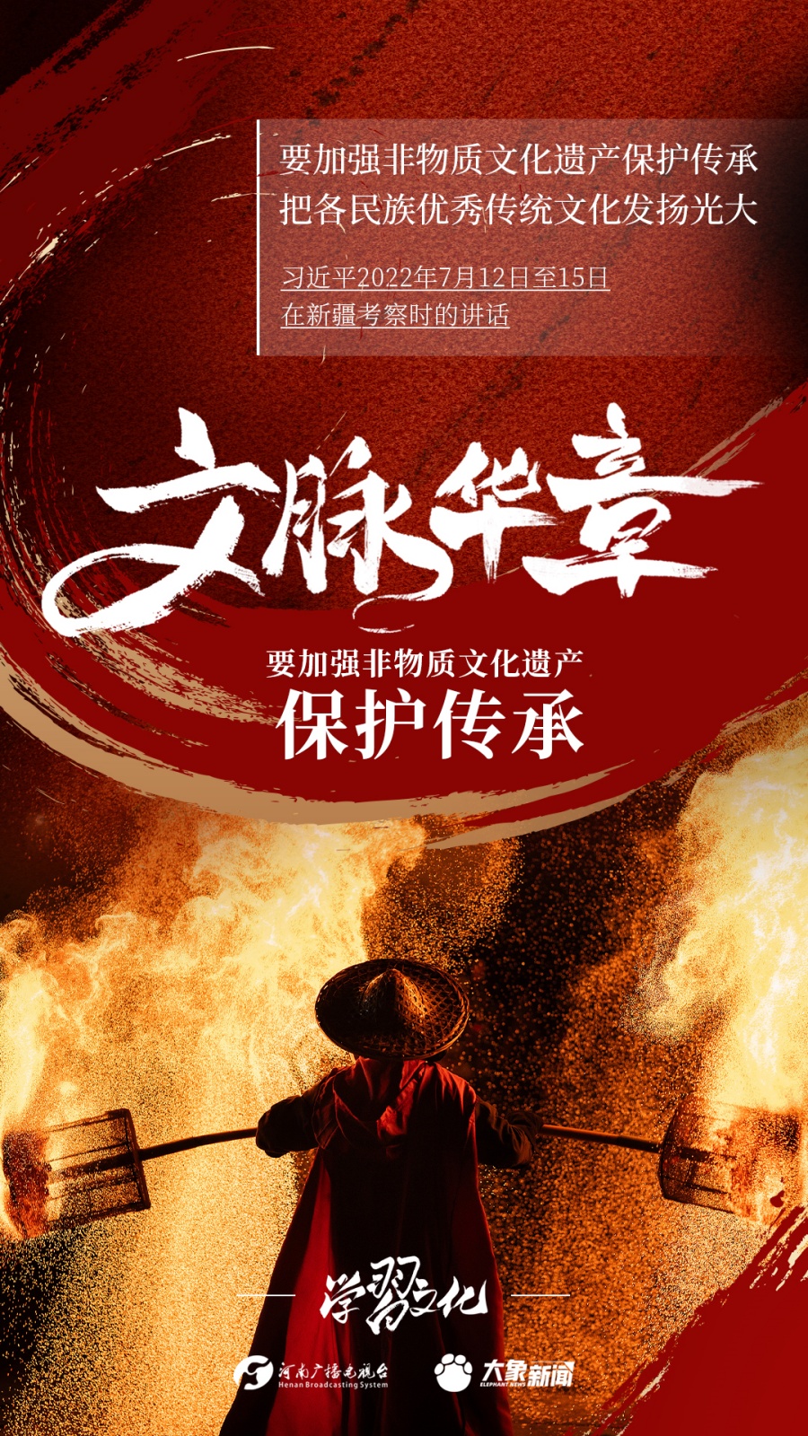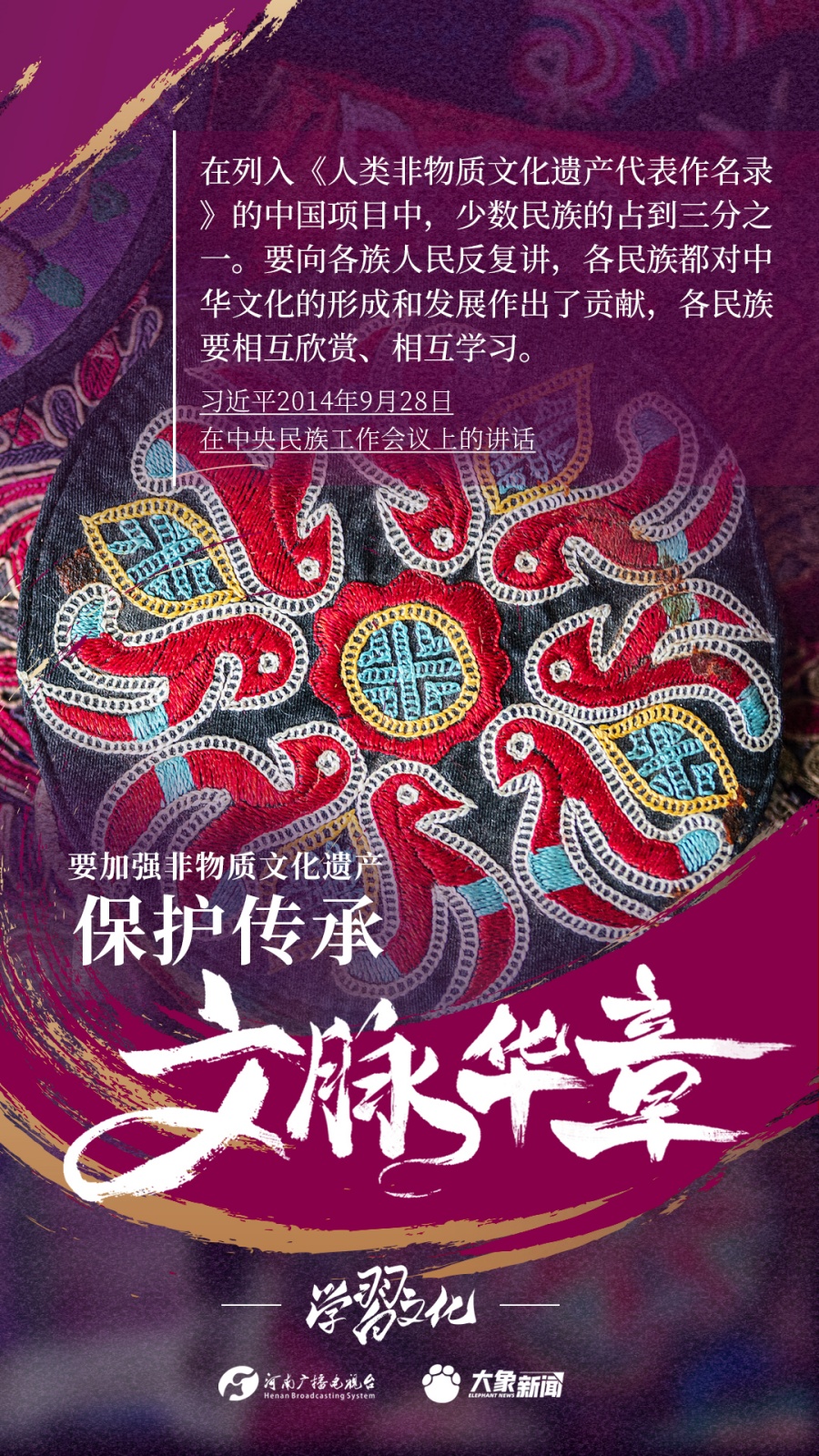 非物質(zhì)文化遺產(chǎn)是中華優(yōu)秀傳統(tǒng)文化的重要組成部分,是中華文明綿延傳承的生動見證,是我國各族人民寶貴的精神財富。習近平總書記十分關心非物質(zhì)文化遺產(chǎn)的保護傳承,多次強調(diào)“要扎實做好非物質(zhì)文化遺產(chǎn)的系統(tǒng)性保護”“培養(yǎng)好傳承人”等。大象新聞為您梳理,邀您一起學習、領悟、踐行。