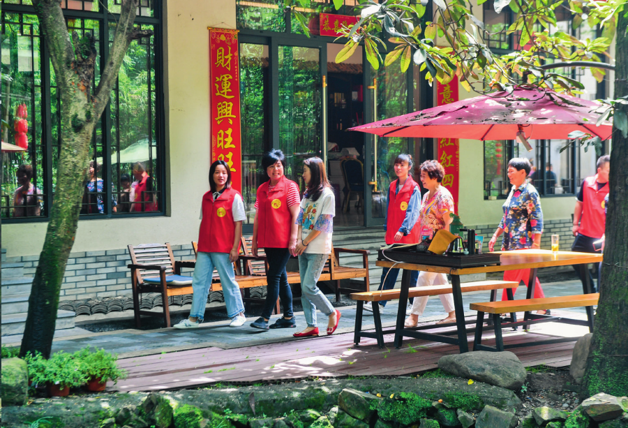 走進白沙村,只見柏油馬路邊是排列齊整的黃色小洋樓,家家戶戶門口都有綠植點綴,村里建起健身廣場、籃球場、游泳池、羽毛球場等大型運動場所。2024年春節(jié),村里組織第三次拍攝全村福,上千村民齊聚在一起,用鏡頭定格幸福笑容。