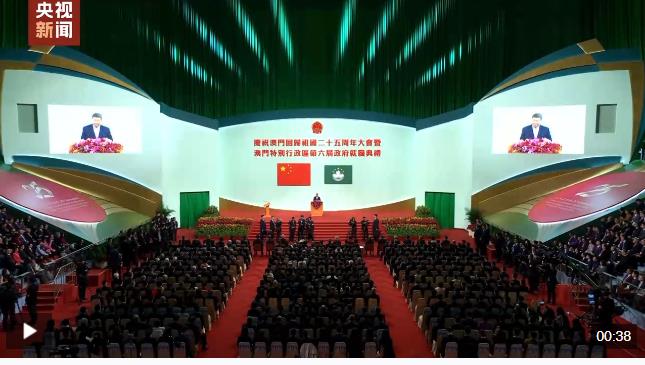 12月20日上午,慶祝澳門回歸祖國25周年大會暨澳門特別行政區(qū)第六屆政府就職典禮舉行。中共中央總書記、國家主席、中央軍委主席習近平出席并發(fā)表重要講話。