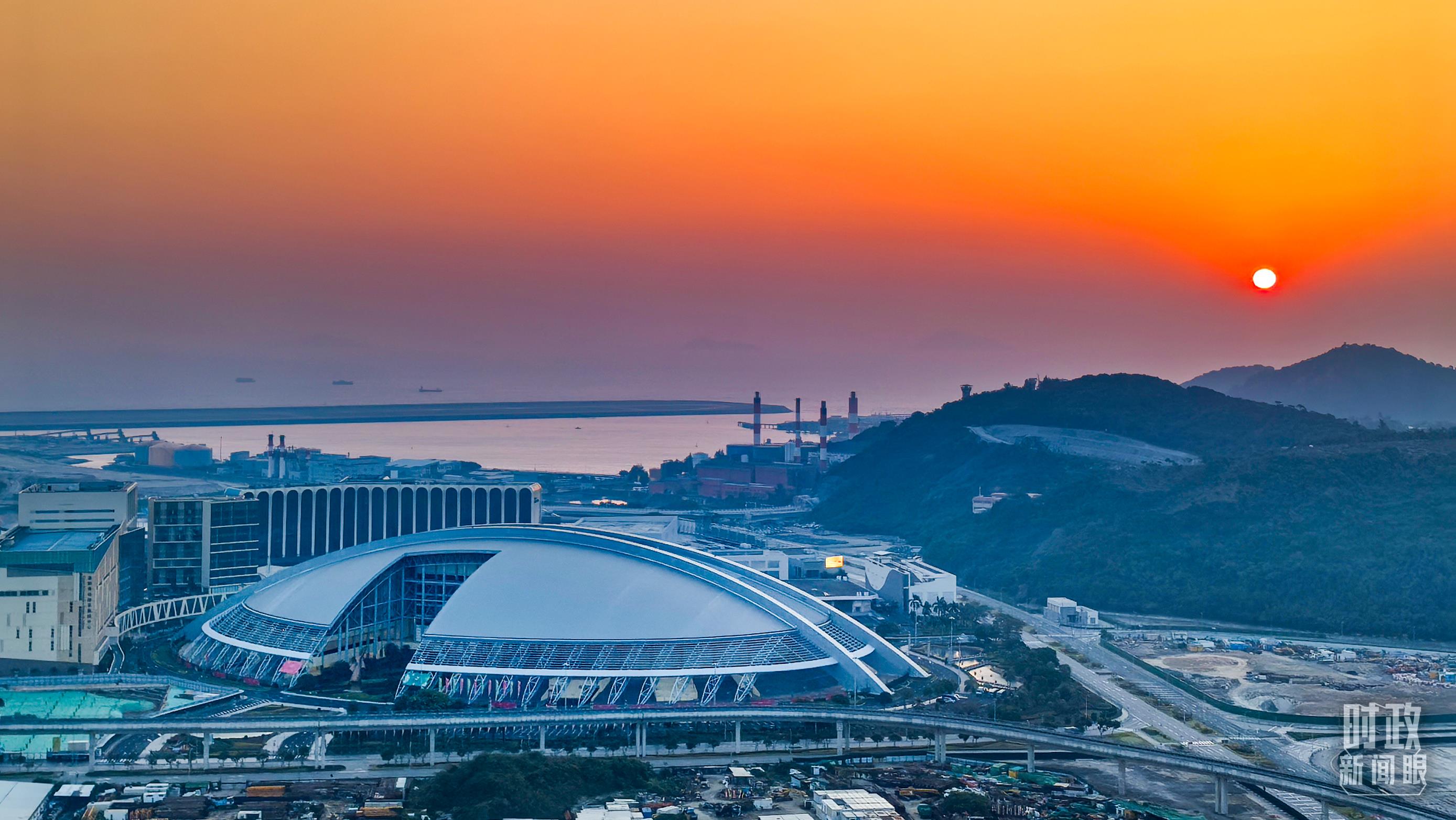 12月20日,朝霞映襯下的澳門(mén)東亞運(yùn)動(dòng)會(huì)體育館。(總臺(tái)央視記者張垚拍攝)