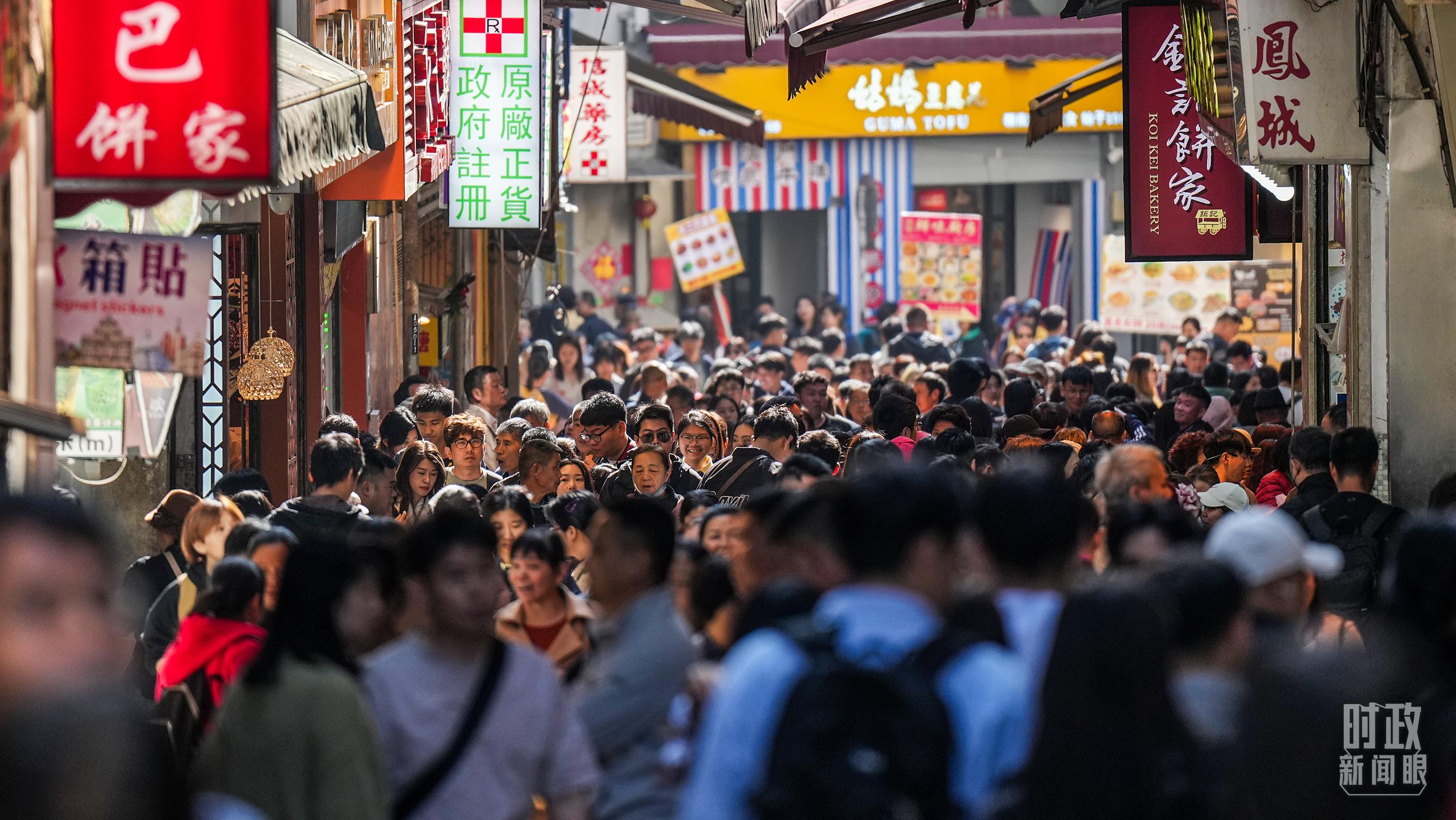 澳門(mén)街頭人流如織。(總臺(tái)記者李晉拍攝)