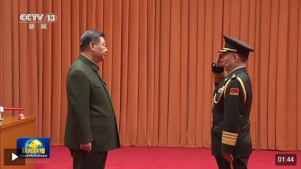 習(xí)近平向晉升上將軍銜的陸軍政治委員陳輝頒發(fā)命令狀,表示祝賀。佩戴了上將軍銜的陳輝向習(xí)近平敬禮,向參加儀式的全體同志敬禮,全場(chǎng)響起熱烈掌聲。