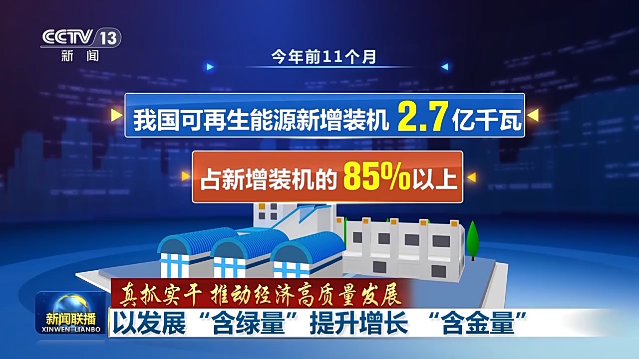 中國電力企業(yè)聯(lián)合會的最新數(shù)據(jù)顯示,今年前11個月,我國可再生能源新增裝機2.7億千瓦,占新增裝機的85%以上;到11月底,我國風電和太陽能發(fā)電裝機占比首次超過四成,裝機規(guī)模已超過煤電,提前6年多完成我國在氣候雄心峰會上對世界的承諾。