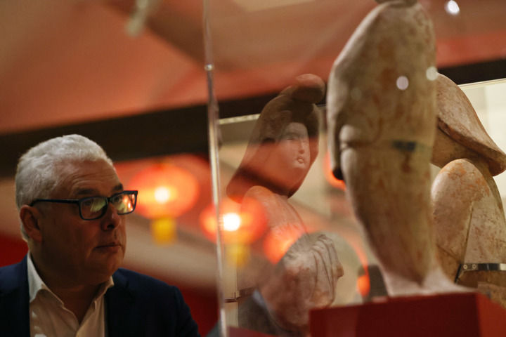 2024年11月18日,在位于法國巴黎的吉美國立亞洲藝術(shù)博物館,一名觀眾參觀“中國·唐——一個多元開放的朝代(7至10世紀(jì))”展覽。新華社記者 高靜 攝